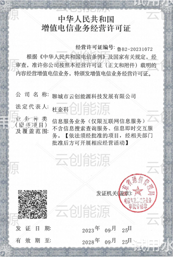 Copyright © 2023 聊城市云创能源科技发展有限公司 | 鲁ICP备2024124391号-1 | 增值电信业务经营许可证:鲁B2-20231072